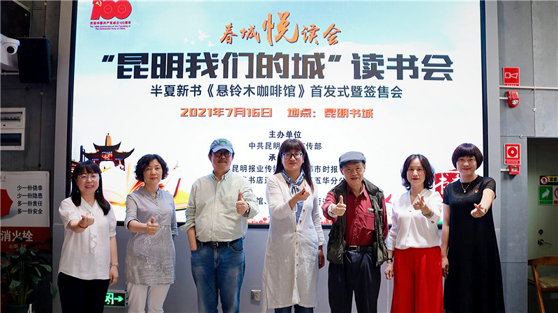 七月的昆明,庆祝建党百年的红色旋律与盛夏的盎然绿意相得益彰。7月16日,春城悦读会之“昆明我们的城”读书会暨作家半夏新书《悬铃木咖啡馆》首发式在昆明书城成功举行。这场独具创意的沉浸式读书会吸引了众多嘉宾读者参加,除了嘉宾半夏、张庆国、风之末端围绕“昆明我们的城”等主题的对谈,读书会还别出心裁地推出“老昆明&与虫在野”主题书影展,参与者在活动中读书、观展、互动,感受了阅读的多元乐趣。